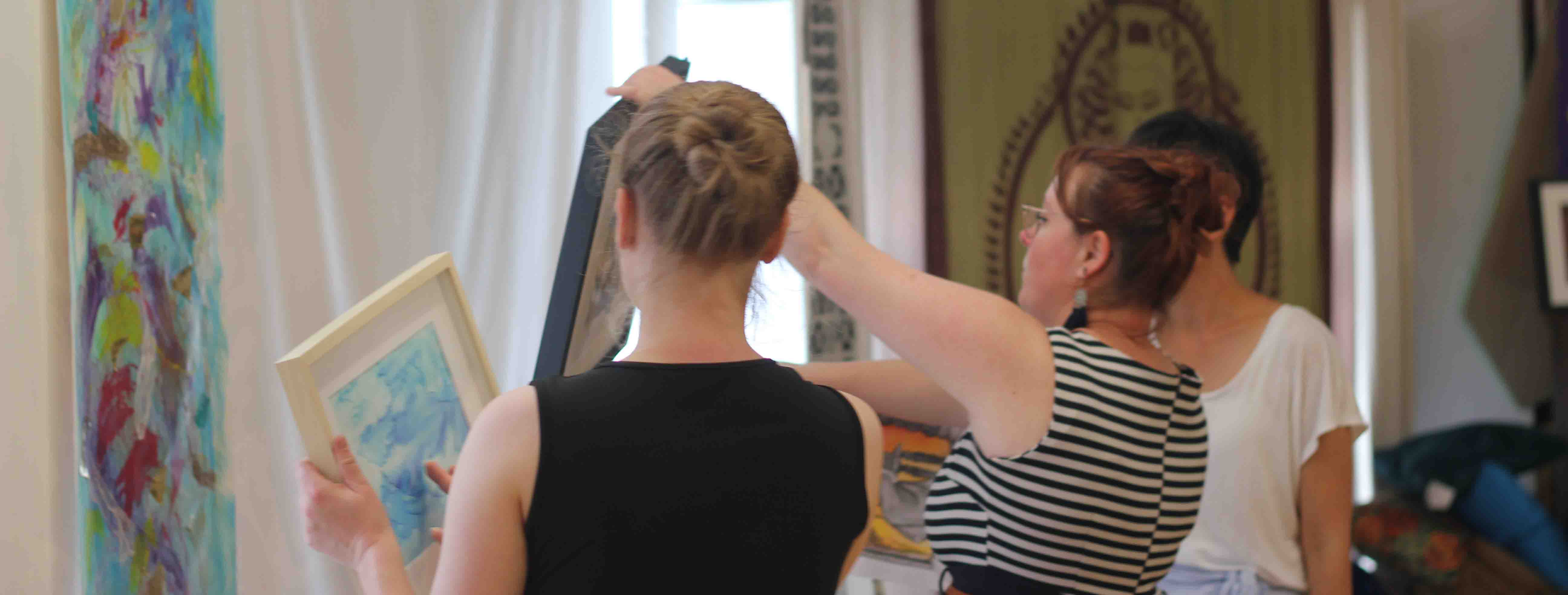 En retournant voir sur photos la façon dont les oeuvres ont été exposées le 28 juin, découvrir d'autres thématiques de rapprochement entre nos univers (il n'y a pas que la mélancolie et la couleur)
